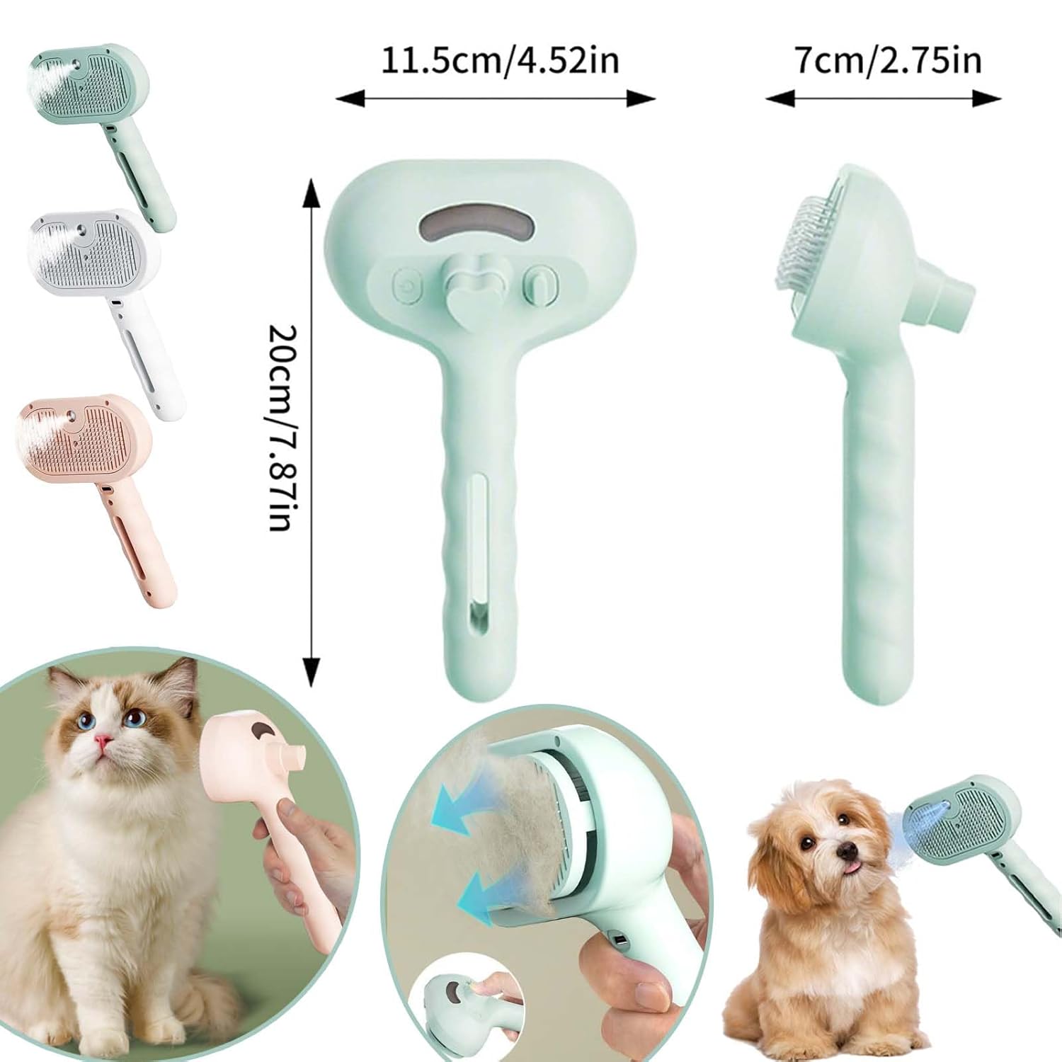 Controle de Pelos Voadores: A função de pulverização (spray) libera uma névoa suave que umedece levemente o pelo. Isso neutraliza a eletricidade estática e "prende" os pelos soltos no pente, evitando que flutuem e caiam no chão, roupas e móveis.