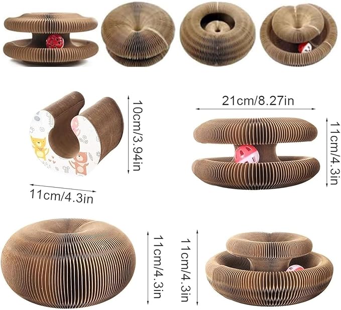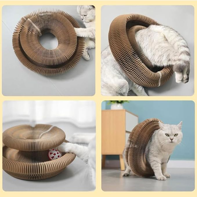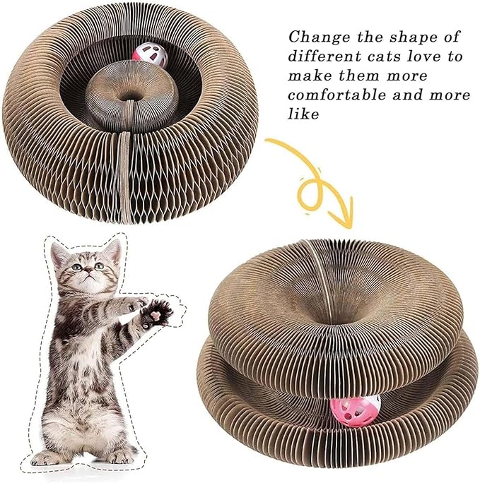 Design Transformável (Magic Organ): O material é flexível e articulado como uma sanfona (órgão), permitindo que você mude o formato do arranhador (circular, S, esticado) para manter o interesse do seu gato sempre renovado.