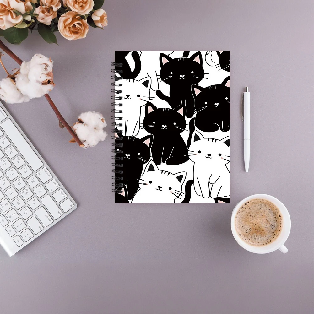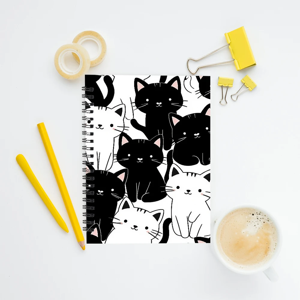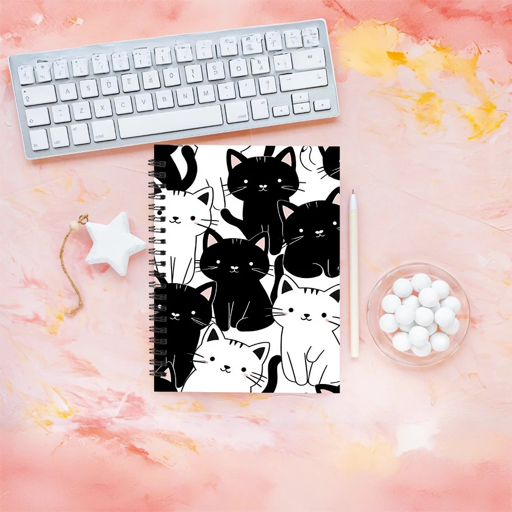 🖋️ Caderno de Espiral Deluxe Gato P&B: 5.5×8.3 polegadas – Elegância para Qualquer Ocasião!