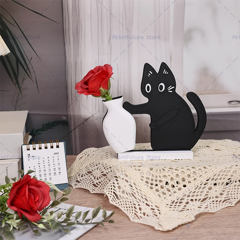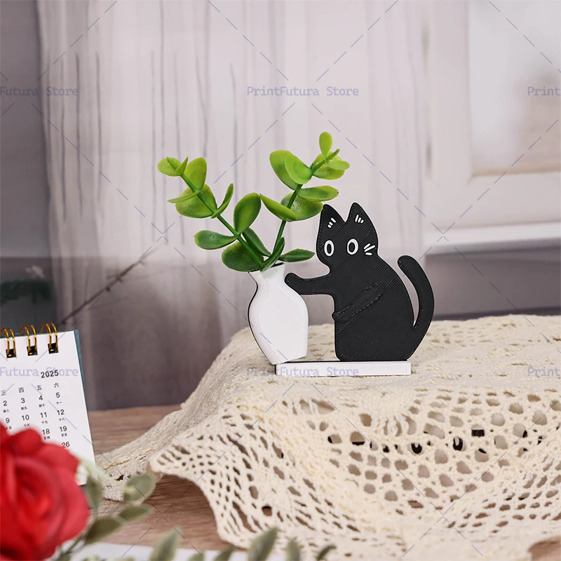 🐈 Vaso Gatinho Travesso 3D: Porta-Canetas e Enfeite de Gato Preto Fofo!