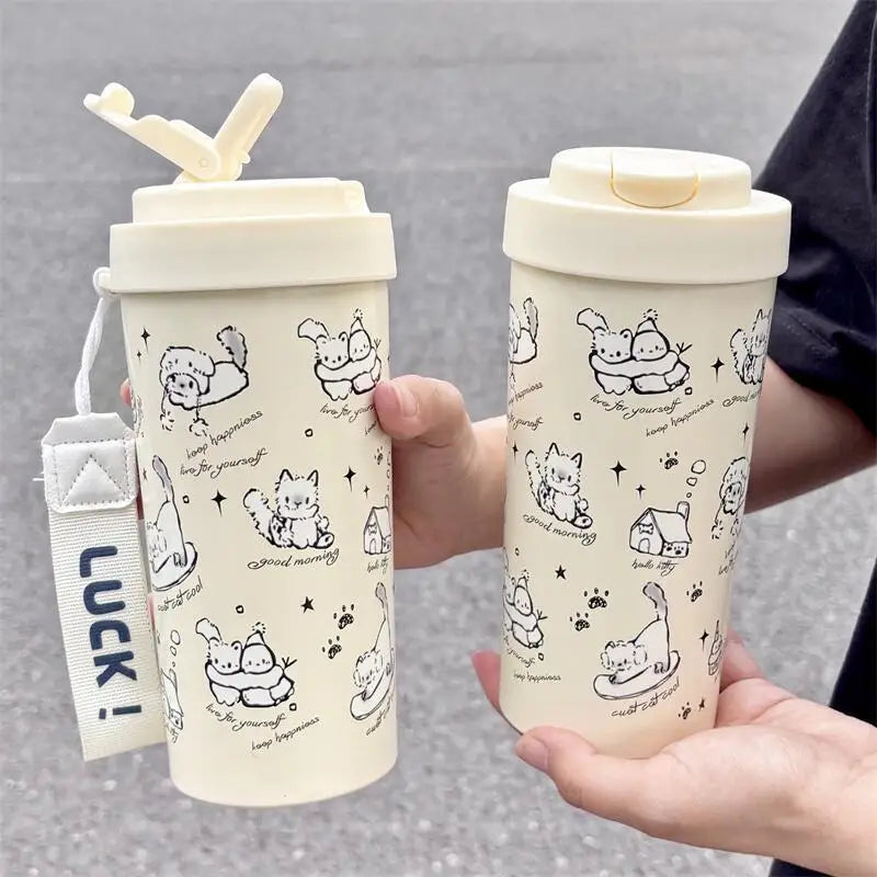 ❄️ Garrafa Térmica Gato Boneco de Neve: Aço Inoxidável, Canudo e Charme de Natal!