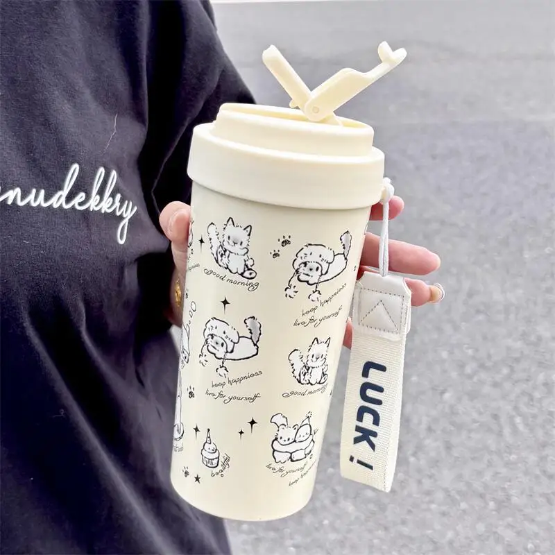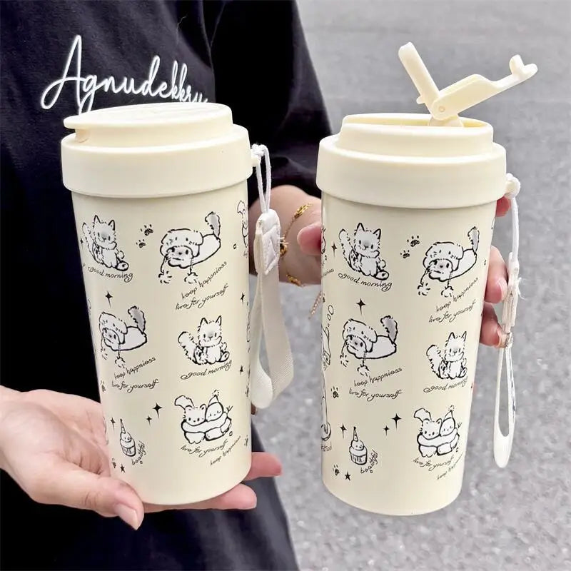 Tampa com Canudo Prático: Inclui uma Tampa com Canudo vedada para beber com facilidade, sem respingos – ideal para uso no Carro (Car Coffee Cup) ou na mesa de trabalho.