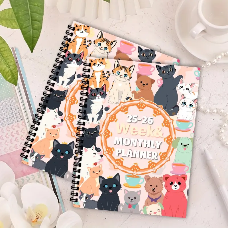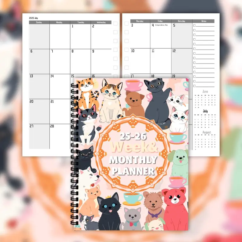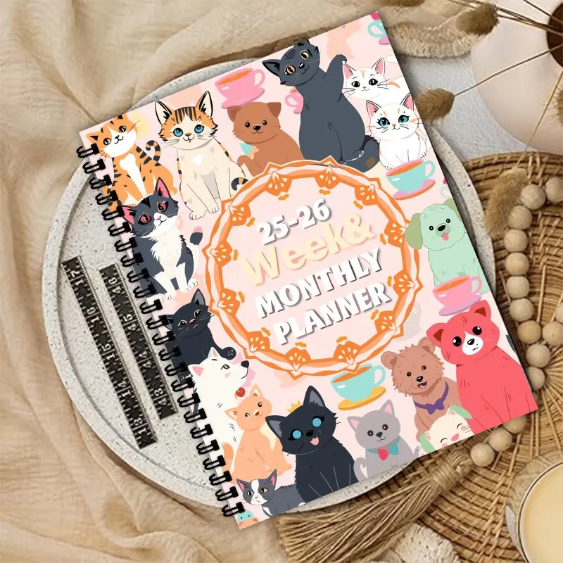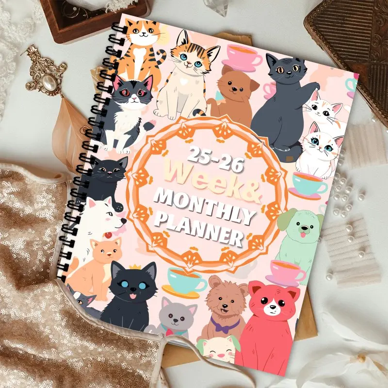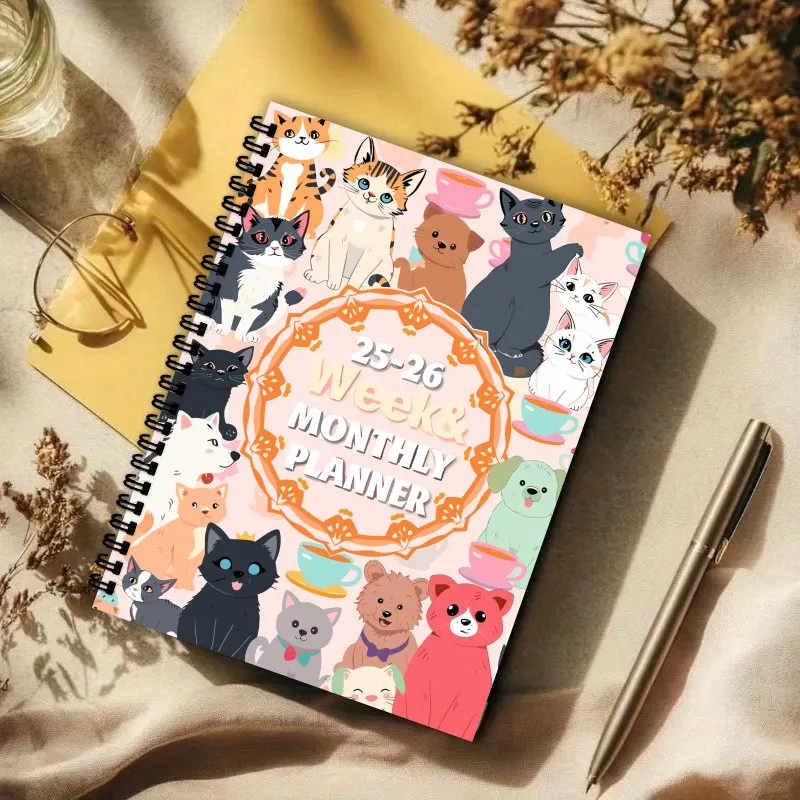 🗓️ Planner Semanal e Mensal 2025-2026: Arte Natural, Gatos e Cães, com Espiral!